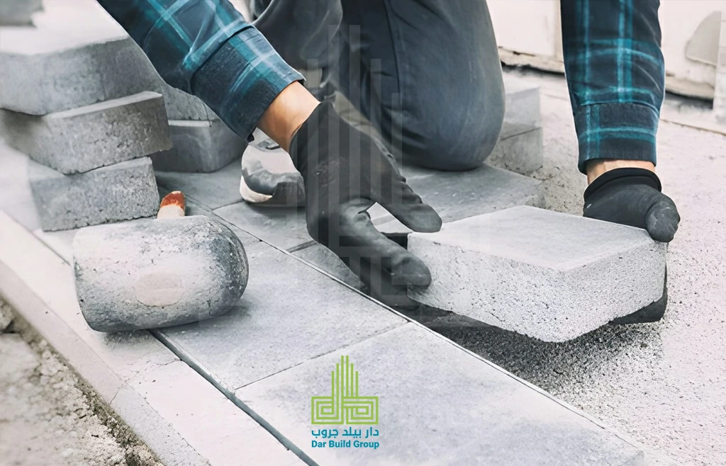 يُنظف السطح من الرمل الزائد ويفحص لضمان استواء الأرضية ليصبح جاهزًا للاستخدام سواء للمشاة أو المركبات مباشرة بعد التركيب.