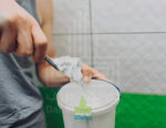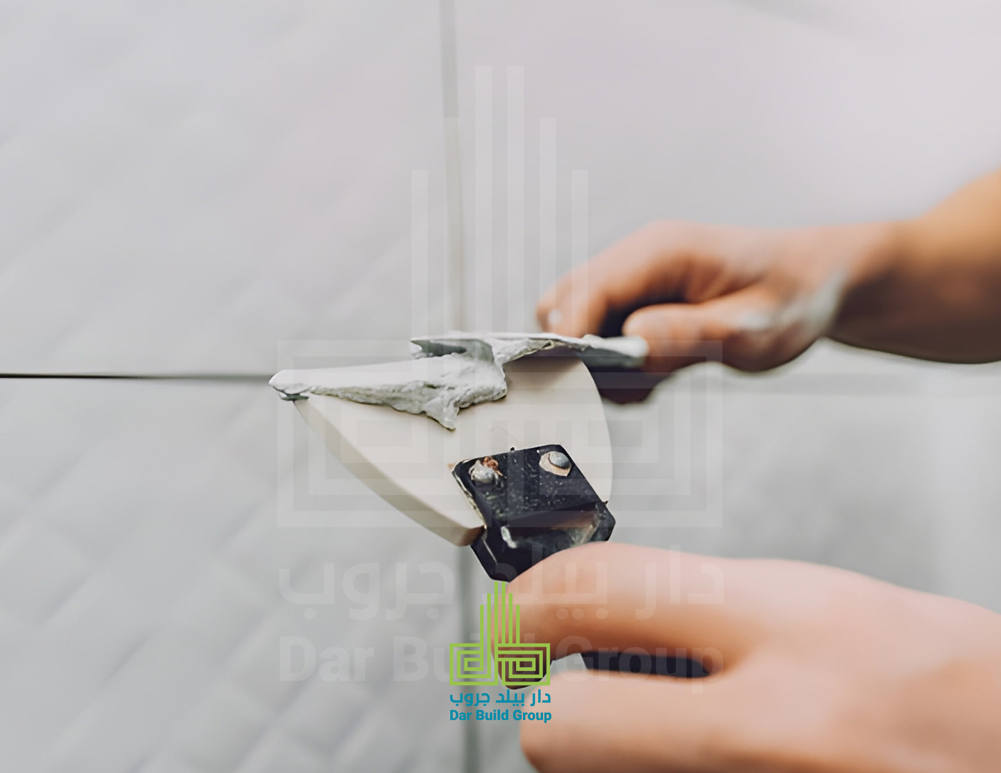- يملأ الخليط داخل الفواصل باستخدام أداة مطاطية أو إسفنجة