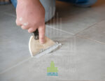 - يزال الفائض من على سطح البلاط قبل جفاف المادة